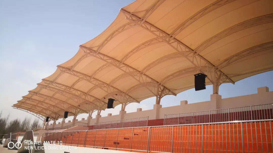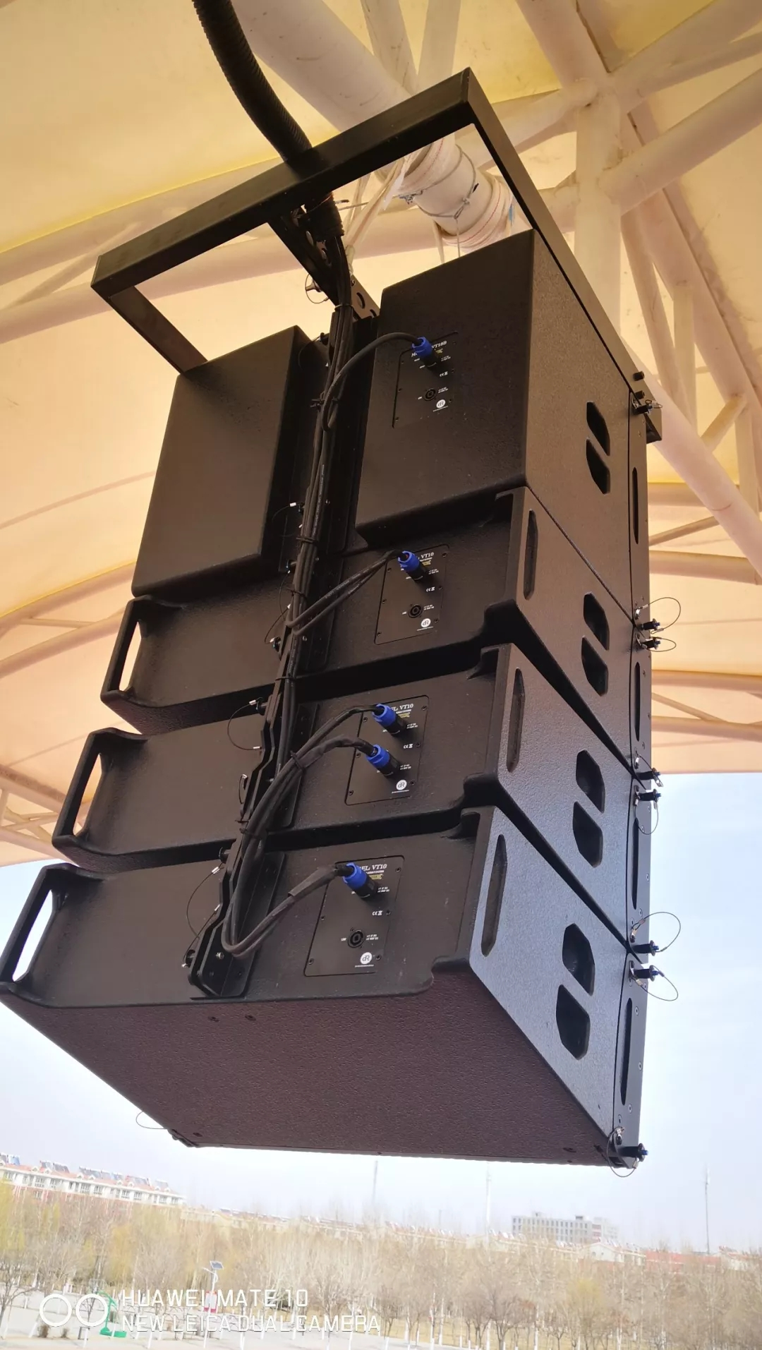 室外體育場(chǎng)擴(kuò)聲系統(tǒng) 戶外體育場(chǎng)主擴(kuò)聲由12只DIGIRATE的VT10雙十寸線陣列音箱搭配4只VT18B超低頻音箱打造。分別以3+1為一組,共四組吊掛在觀眾席的正上方指向場(chǎng)外。整個(gè)擴(kuò)聲系統(tǒng)由5臺(tái)MX1000MK,3臺(tái)MX700MK功率放大器作驅(qū)動(dòng),1臺(tái)DM20數(shù)字調(diào)音臺(tái),1臺(tái)DPA360數(shù)字音頻處理器,2臺(tái)SP8電源時(shí)序器組成。