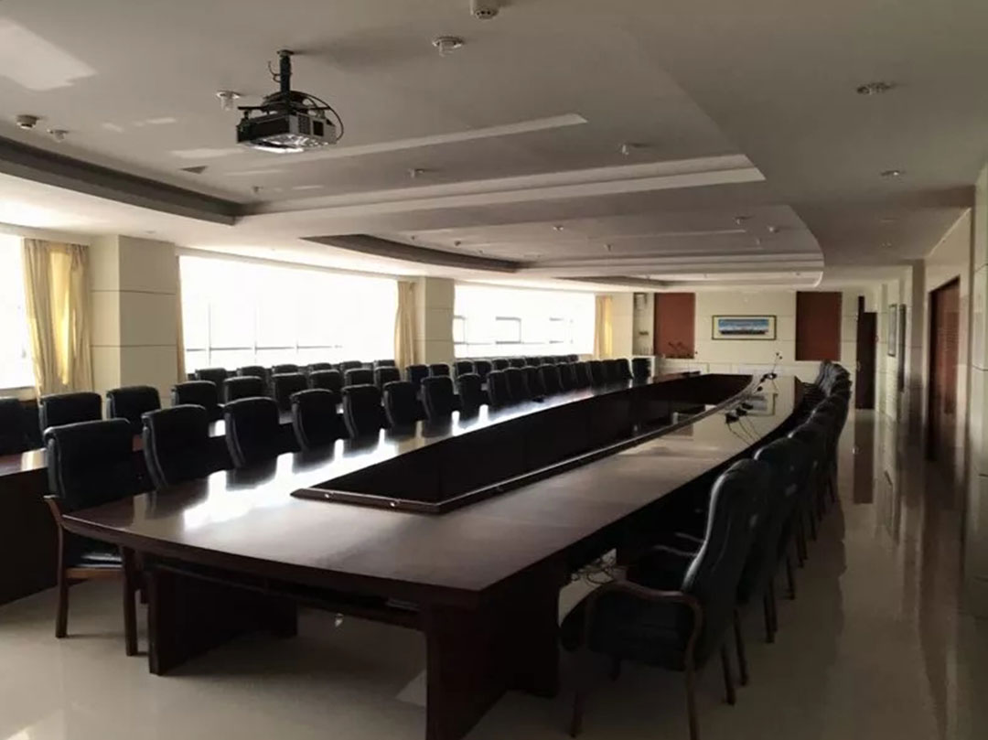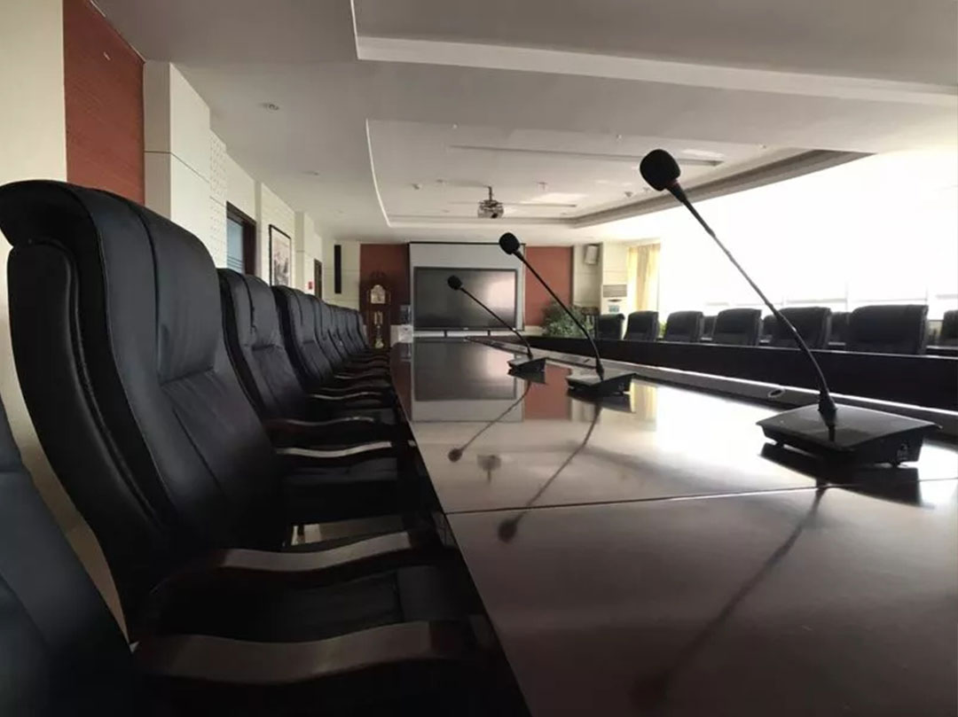 會(huì)議室擴(kuò)聲系統(tǒng) 會(huì)議室主擴(kuò)揚(yáng)聲器由2只DIGIRATE的TS-300音柱揚(yáng)聲器打造,分別固定安裝在室內(nèi)墻體上。拾音系統(tǒng)由2臺(tái)DCW-7100M無(wú)線會(huì)議主機(jī)搭配2臺(tái)DCW-7100C無(wú)線會(huì)議主席單元,10臺(tái)DCW-7100D無(wú)線會(huì)議代表單元麥克風(fēng)打造。整個(gè)擴(kuò)聲系統(tǒng)由1臺(tái)AX2502MKII功率放大器,1臺(tái)DPA360數(shù)字音頻處理器,1臺(tái)SP8電源時(shí)序器,1臺(tái)DM12數(shù)字調(diào)音臺(tái)組成。