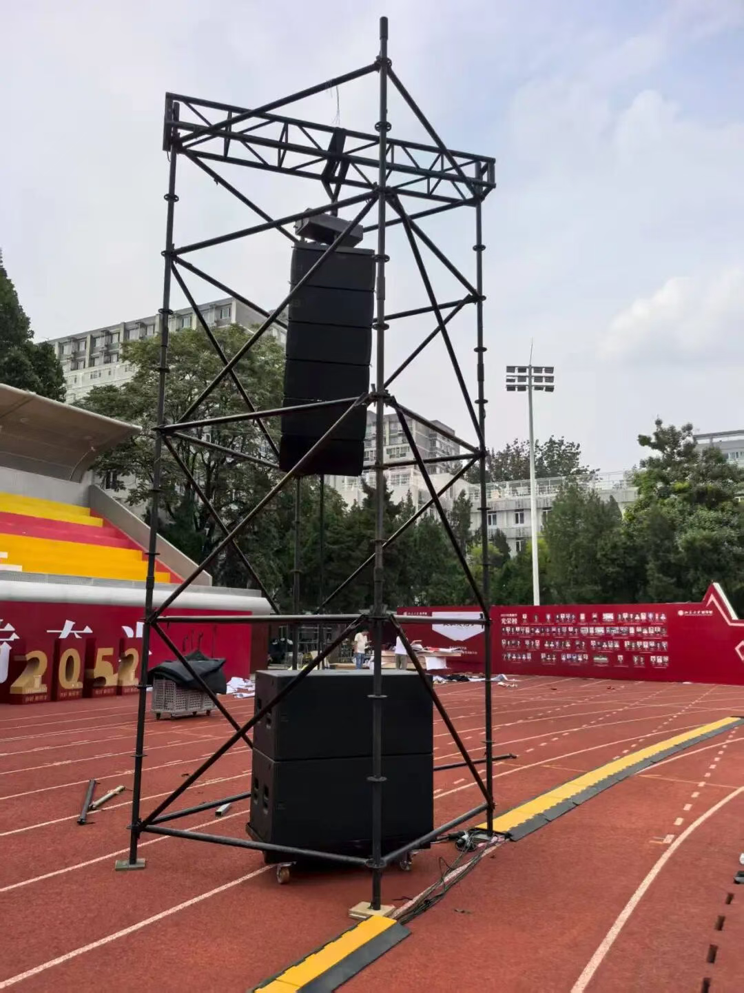 現(xiàn)場使用了SRX910LA雙10寸有源陣列揚(yáng)聲器,每只音箱內(nèi)均有2個(gè)10”釹磁低音單元和1個(gè)1.5”釹磁高音單元,通過創(chuàng)新的兩分頻設(shè)計(jì)將低頻和高頻安裝在一體化波導(dǎo)上,實(shí)現(xiàn)更加無縫的水平覆蓋。12只SRX910LA以吊掛式陣列布局,實(shí)現(xiàn)了從主席臺(tái)到觀眾席末排的均勻聲壓覆蓋,確保校領(lǐng)導(dǎo)致辭、教師發(fā)言與音樂表演的細(xì)節(jié)清晰可辨。低頻使用SRX928S雙18”有源超低揚(yáng)聲器,為現(xiàn)場增添了強(qiáng)大的低頻震撼力。
